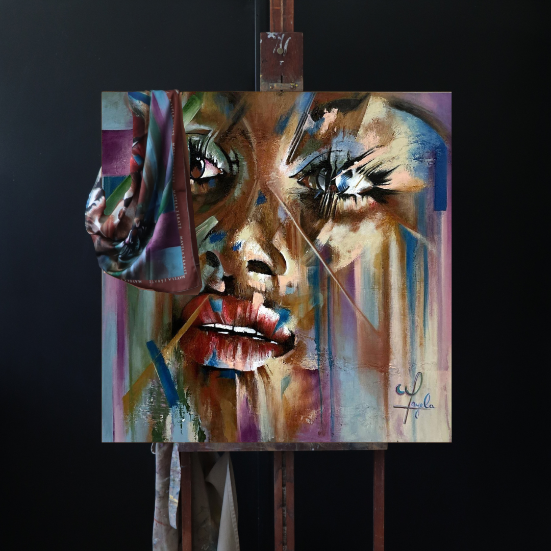 Inspirado en una serie de retratos de personas afroamericanas, creados en acrílico y pastel, con la fuerza del trazo a espátula y pincel. Una pieza única para llevar arte todos los días!