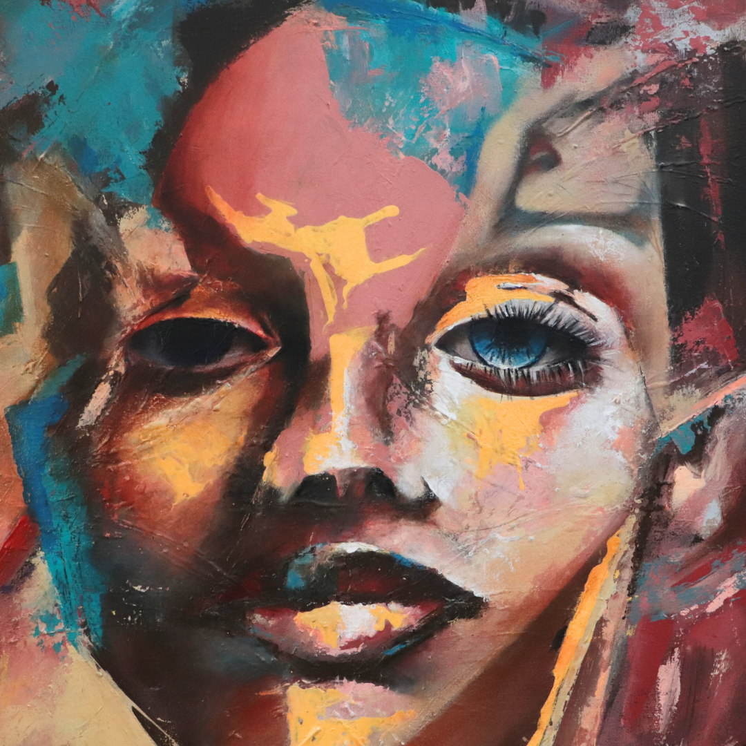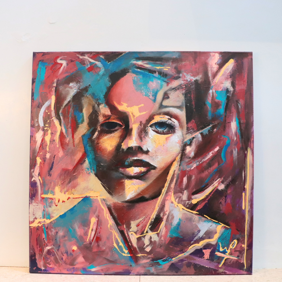 Acrílico con textura y presencia visual marcada. Diseñado para llenar el ambiente de energía y color.